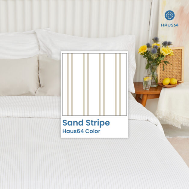 Sand Stripe สว่างไสวแบบหาดทราย ต้องลวดลายพื้นขาวคาดริ้วทองเล็ก ๆ ซึ่งได้แรงบันดาลใจจากริ้วหาดทรายในวันหยุดพักผ่อน สีนี้เป็นสียอดฮิตของคนชอบลายมิกซ์แอนด์แมทช์ เลือกผ้าปูเรียบแล้วตัดด้วยลายบางๆ สร้างมิติที่ทำให้ห้องดูอบอุ่นน่าอยู่