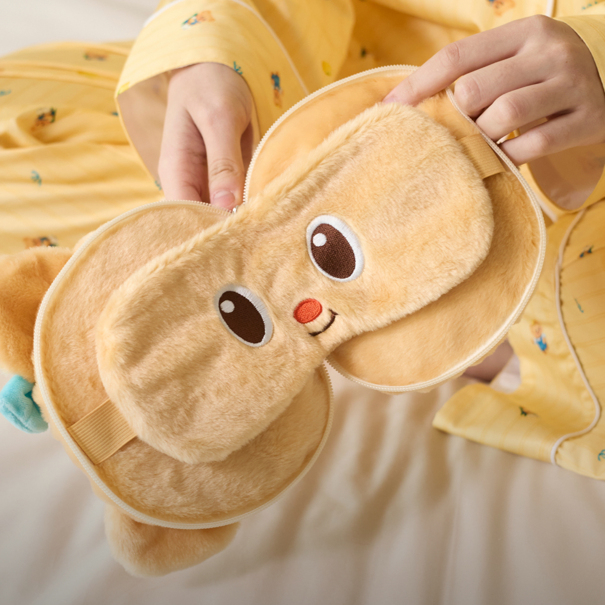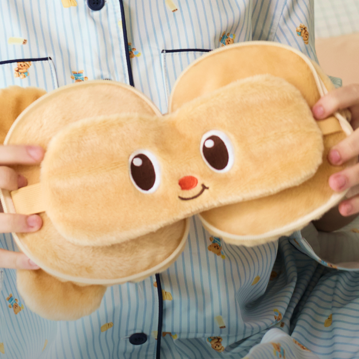 ผ้าปิดตาน้องเนยสุดนุ่มนิ่ม สามารถพับเก็บและกางออกเป็นหมอนรองศีรษะได้ พกพาสะดวก เดินทางไปกับคุณได้ทุกที่